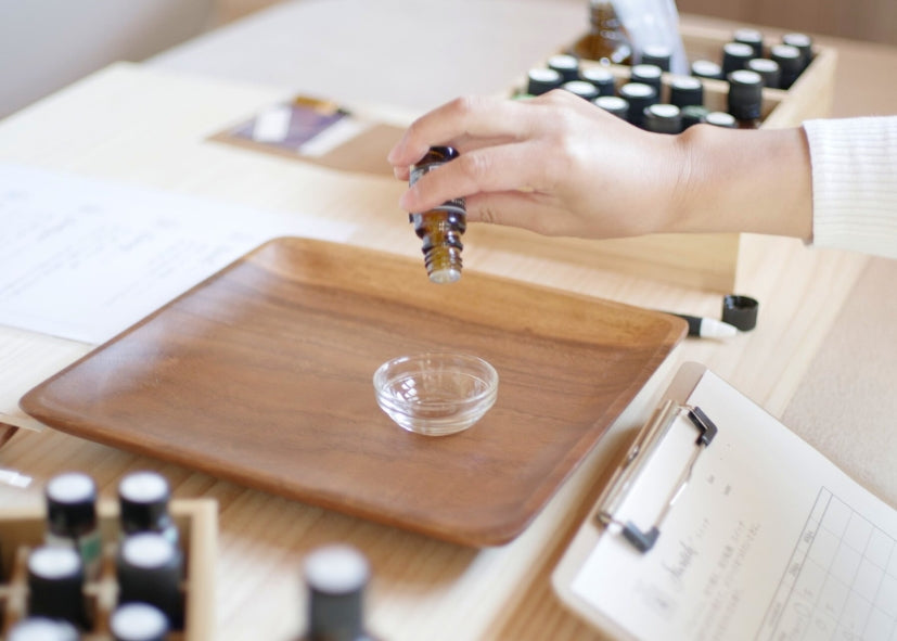 ヒアリング後に香りのテイスティングを行い、あなたが「心地よい」と感じる香りをもとに、厳選した上質な天然精油のみを使用し、あなただけの特別な香りを調香します。