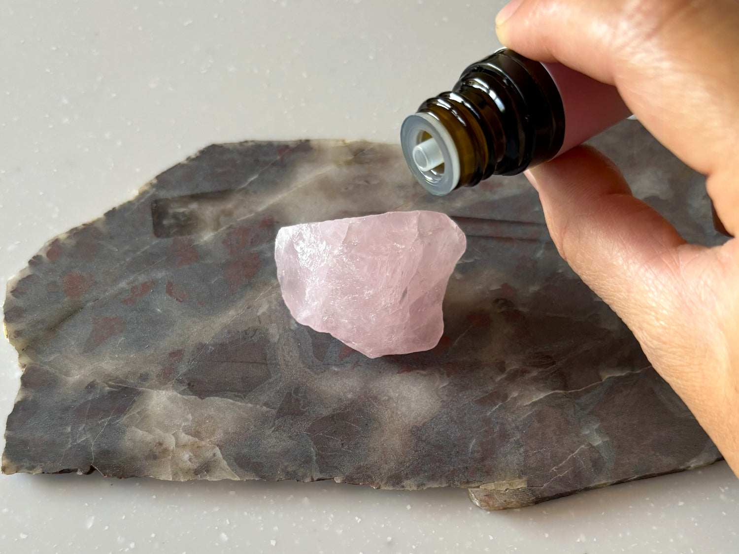 アロマブレスレットやアロマピアスをティッシュやハンカチタオルの上に乗せ、天然溶岩の部分にエッセンシャルオイルを1~2滴垂らし、乾いてから手首や耳元に着用してください。